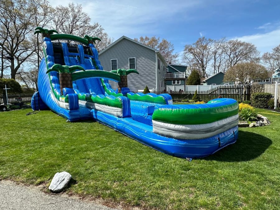 Get ready for the ultimate summer fun with our Tropical Paradise inflatable! This exciting inflatable stands at an impressive 20 feet and features some dual lane action. DOUBLE THE ACTION DOUBLE THE FUN!!! Making it perfect for all ages. Whether you're hosting a backyard party, corporate event, or school carnival, the Tropical Paradise is sure to be a hit with your guests.