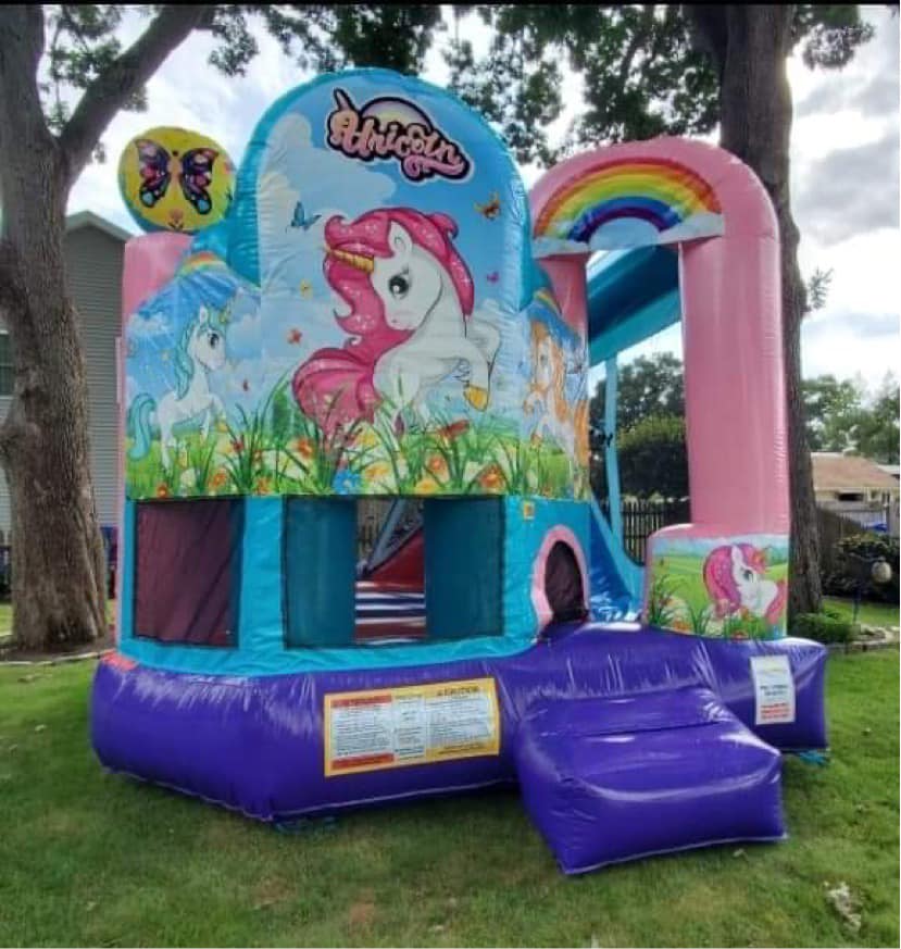 Don't miss out on the opportunity to bring joy and excitement to your children's lives. Book the Unicorn Combo today and create unforgettable memories. Available for delivery in Rhode Island and South Coast Massachusetts, this inflatable combo is the perfect addition to any party or event. Get ready for a magical experience!