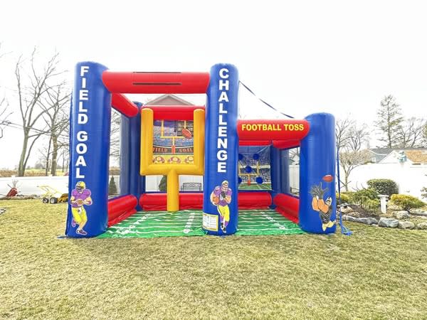 Are you ready to take on the field? With our Football Challenge, it's your time to shine! Whether you're a seasoned quarterback or just love the thrill of the game, this new Sky High Inflatables interactive game is perfect for you. You can test your skills by kicking field goals or stepping up as quarterback to hit one of the targets. It's all about precision, strength, and having a blast.