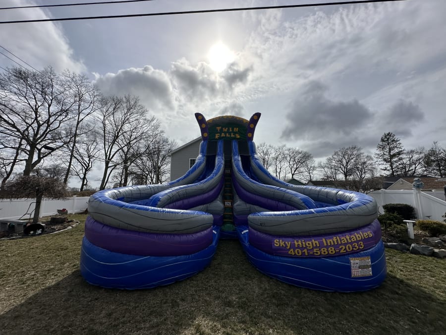 We proudly offer our services to customers seeking our Twin Falls Waterslide in Rhode Island & South Coast Massachusetts. Our professional team ensures prompt delivery and setup, allowing you to focus on enjoying the event while we handle the details. Experience peace of mind knowing that our top-quality inflatables are well-maintained and safe for everyone.